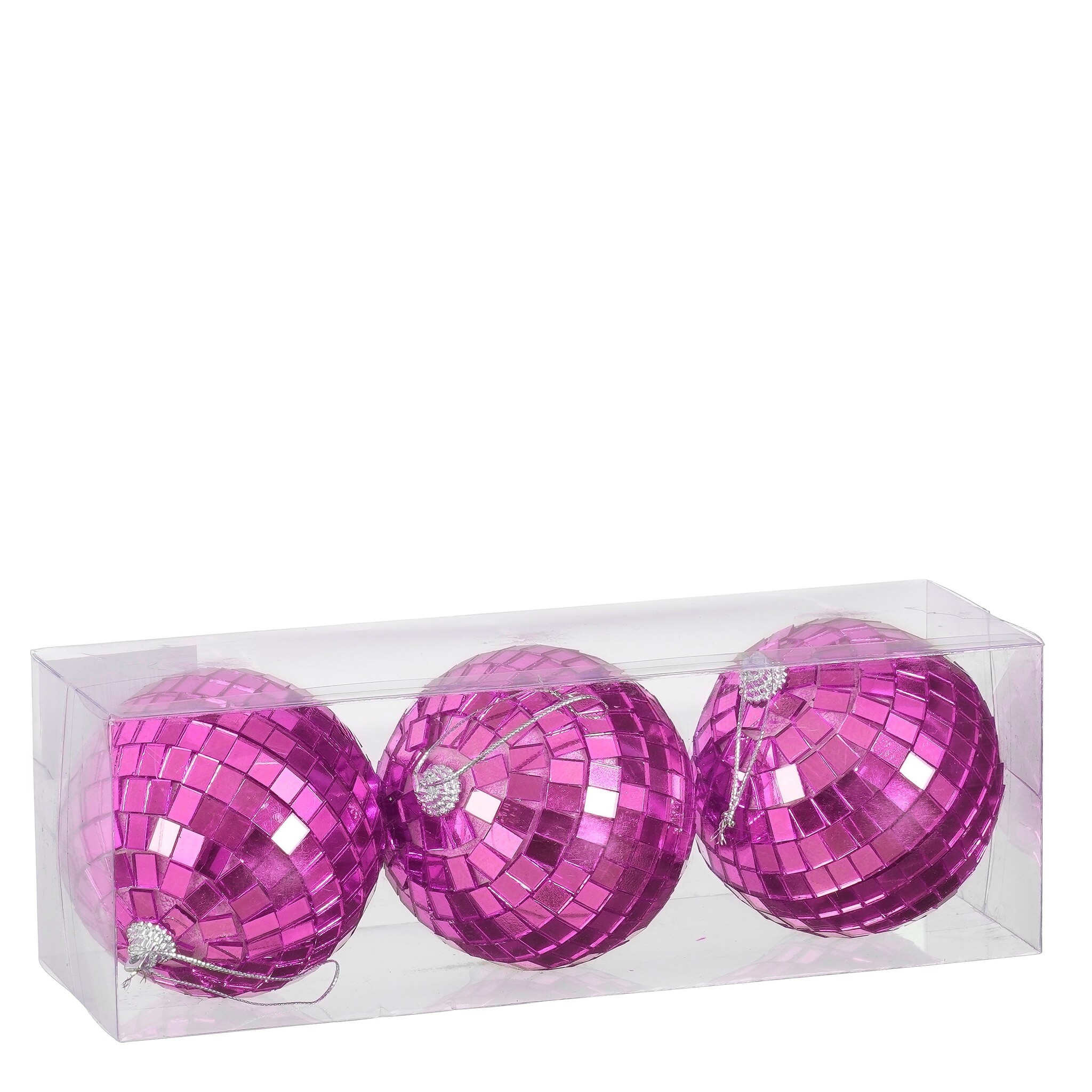Ornament spiegelbal fuchsia 3 stuks